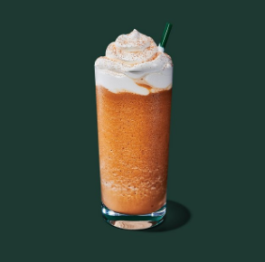 “Classic fall favorite. Handcrafted with Starbucks® signature espresso. Real pumpkin, cinnamon and nutmeg. Topped with whipped cream and real pumpkin-pie spices. Enjoy while it’s in season.” (Starbucks)