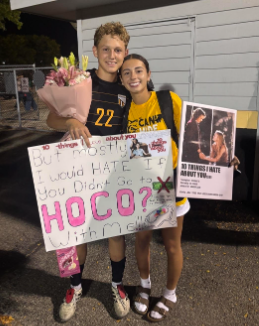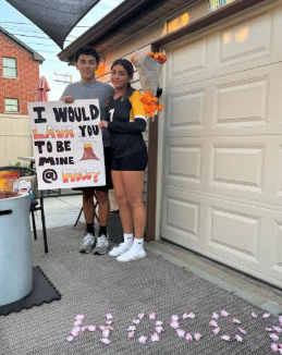 This is junior Jeremiah Rodguiez; he asked Isabel Mojica to Homecoming. Jeremiah’s plan was to surprise Isabel at her house after she had a volleyball game. Jeremiah’s idea for his Homecoming proposal was to spell the word “Hoco” out of flower petals and have a lava themed poster accompany this. Jeremiah’s Homecoming proposal was voted as 3rd best by the Tigers who completed my survey.