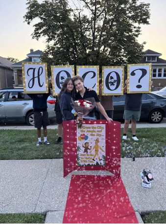 This is junior Adrian Stankiweiz; he asked senior Hailey Rivera to Homecoming. Adrian’s idea for his Homecoming proposal was to surprise Hailey by showing up to her house with his Homecoming poster while some of his friends held up the letters H-o-c-o in the background. He had a Curious George themed poster, with a bubble machine blowing bubbles down a red carpet. Adrian’s Homecoming proposal got first place by our voting Tigers this Homecoming season.
