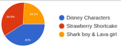 After gathering eighty-three responses, we discovered the top three most popular Halloween costumes this school year for our EPHS Tigers! In third place, we have Shark Boy & Lava Girl. Coming in second place, we have the strawberry shortcake girls. Finally, in first place, we have Disney characters. Out of all of our responses, approximately 41% chose Disney characters.