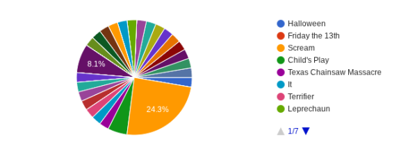 According to the survey, Scream absolutely dominated the other choices of horror movies voted on by 24.3% of our Tigers.
