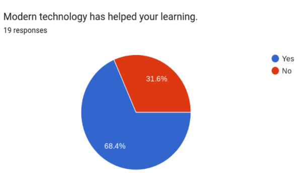This pie chart shows how students consider modern technology to be more helpful when it comes to their overall learning experiences.
